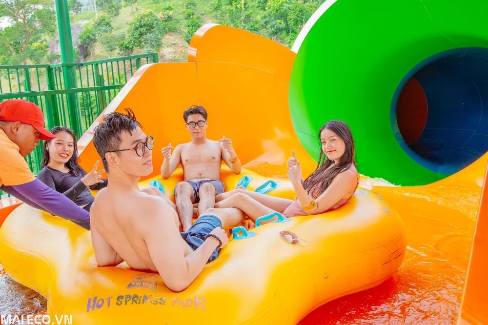 + Quý khách tiếp tục trải nghiệm Công viên nước khổng lồ với nhiều trải nghiệm hiện đại: Bể tạo sóng trên núi, Đường trượt mạo hiể, Đường trượt má, Hố đen Vũ Trụ, Đồi Bungalow, Xem phim miễn phí 9D – 12D..